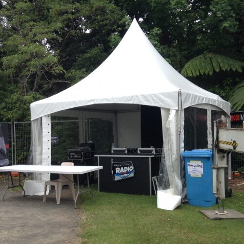 Includes: Pagoda, carpet, lighting, 3 trestle tables
